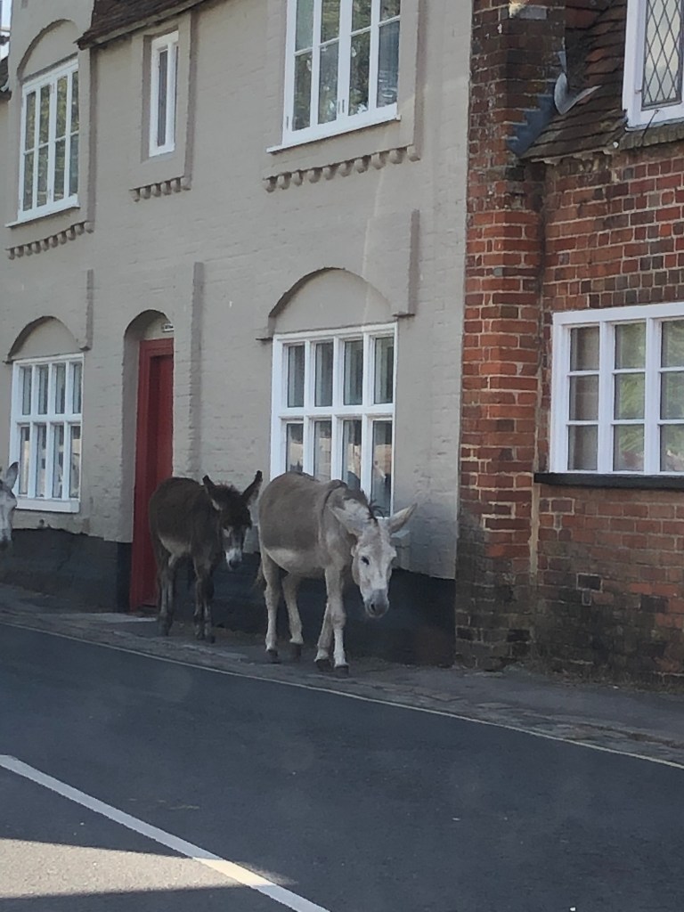 The short drive takes one through a sliver of the National park that is the New Forest. Horses and donkeys amble randomly oblivious to traffic and humans alike. Can’t say I blame them. With thousands of acres to munch on one does wonder why their chosen and presumably choicest green bits have a tendency to cause a traffic jam. Neither of us cared – the horses are beautiful and the donkeys utterly adorable. The latter show a curiosity that means windows are better left closed.